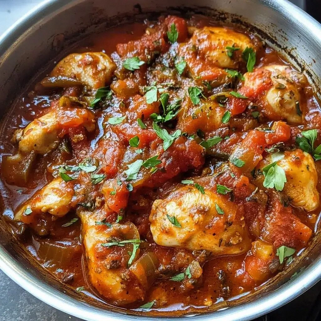 I’ve spent hours perfecting this dish, and it’s now a staple in my kitchen. The combination of seared chicken, aromatic vegetables, and a tomato‑wine sauce creates a symphony of flavors that is both comforting and sophisticated. The best part? It’s simple enough for beginners yet sophisticated enough to impress guests. I dare you to try it and see for yourself.