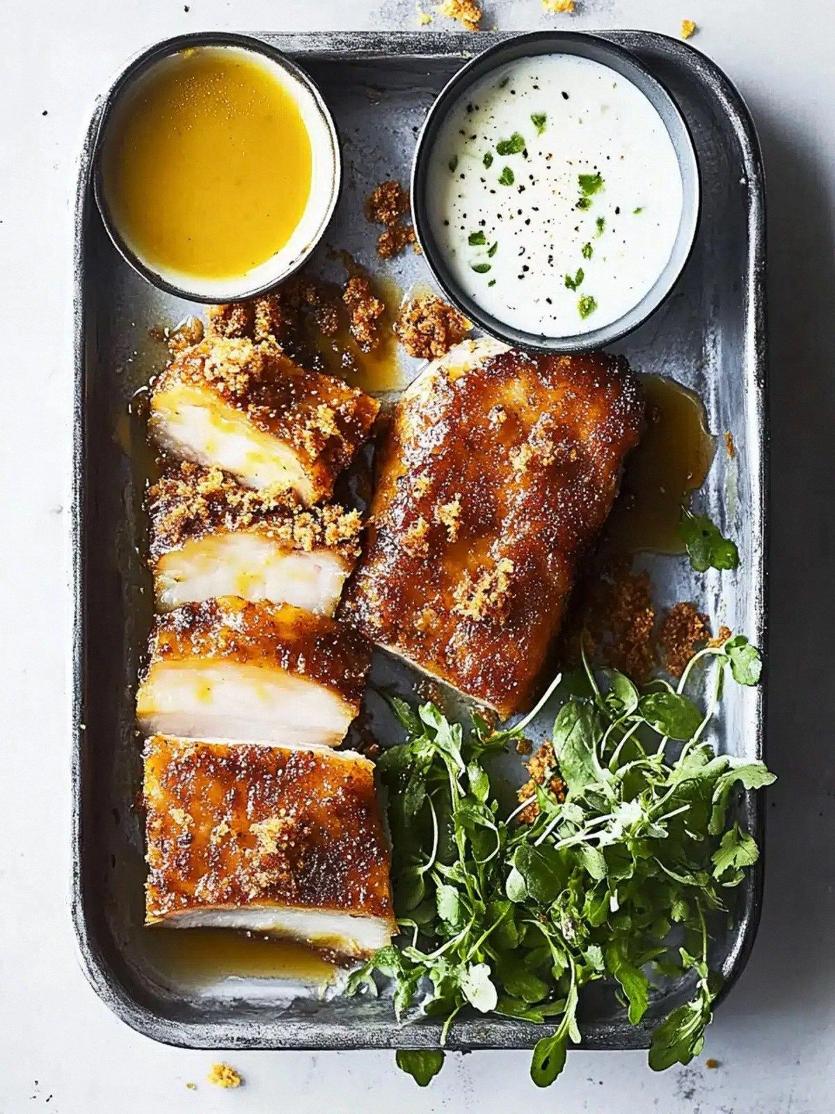 - Serve immediately with the mashed potatoes and snowpea tendrils. The first bite will hit the palate with a crack of crisp, followed by a sweet‑spicy glaze, then the tender pork, and finally the creamy potato. The combination of textures and flavors will keep your guests talking.