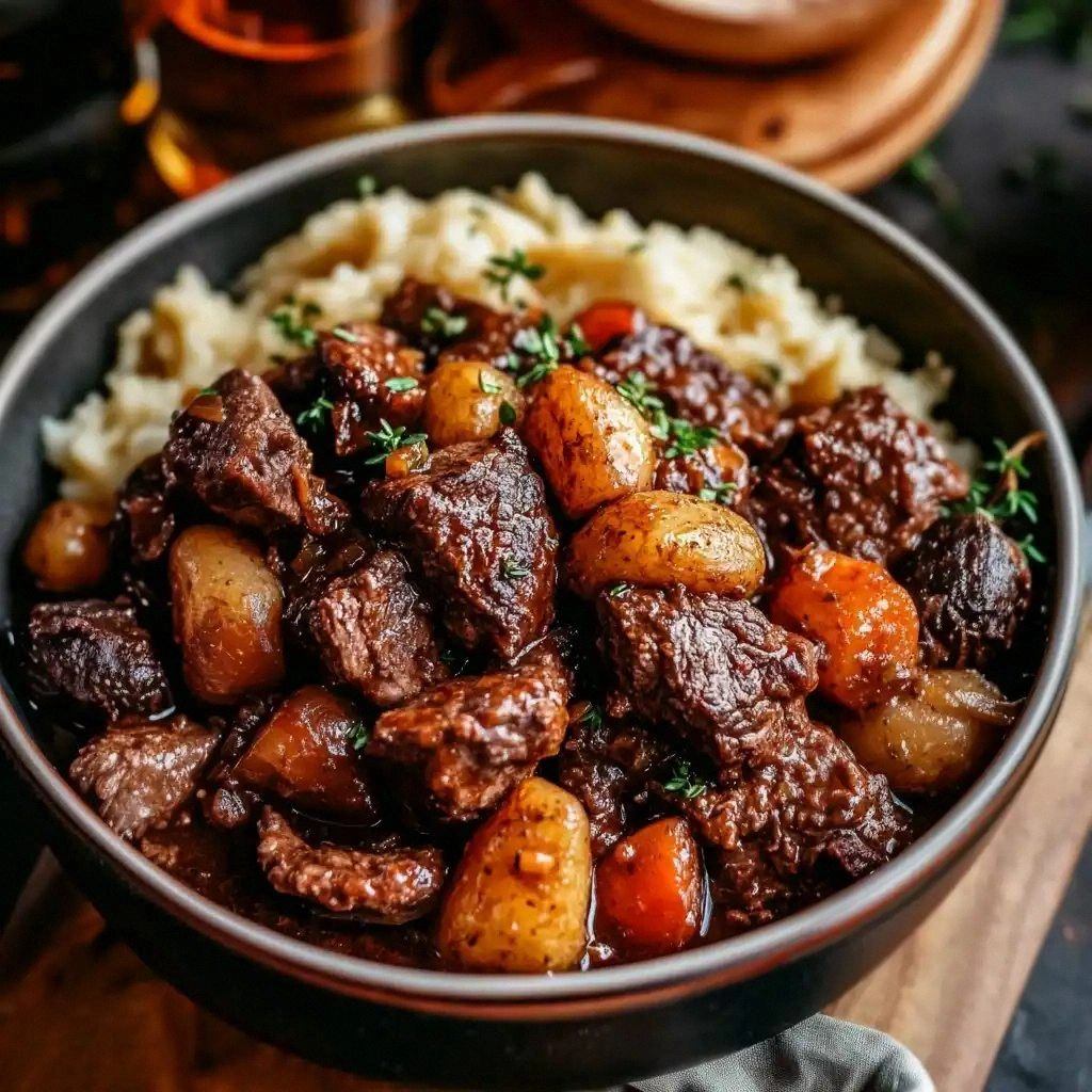 Picture this: a thick, amber‑brown broth that clings to the meat like velvet, the scent of caramelized onions and garlic mingling with the rich bouquet of red wine, and a splash of tomato paste that deepens the color to a jewel‑tone. The sound of the pot hissing as the beef browns, the feel of the wooden spoon against the pot’s rim, the sight of mushrooms and carrots turning a golden hue—everything is a symphony. I dare you to taste this and not go back for seconds; the flavor profile will have you humming for days. I’ll be honest—I ate half the batch before anyone else got a bite—because the first spoon is always the hardest to stop at.