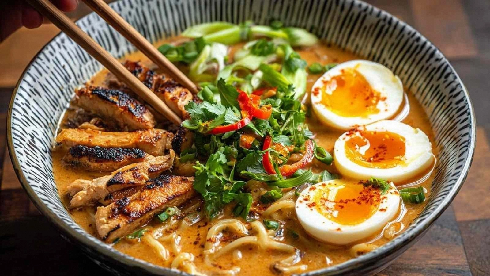Swap the chicken for salmon fillets brushed with a miso glaze. The salmon’s richness complements the creamy sauce, creating a decadent, ocean‑inspired ramen.