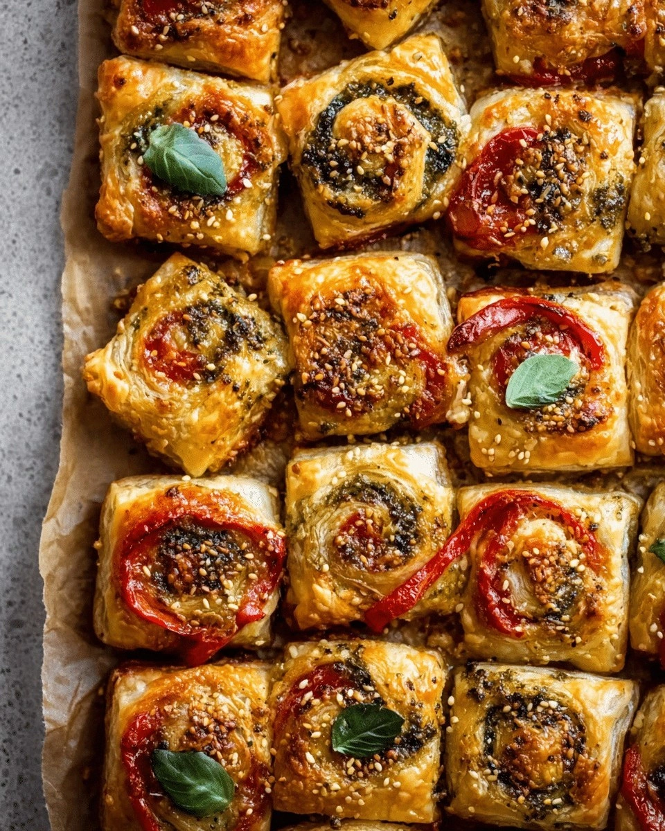 Picture the moment the first bite lands on your tongue: the buttery, flaky pastry cracks like thin ice, revealing a golden, cheese‑laden interior that oozes with basil‑infused pesto. The scent of roasted tomatoes and fresh basil lingers like a summer breeze in a Mediterranean garden. The sound of that satisfying crunch is the soundtrack of a victory over bland appetizers. And the taste—rich, herby, with a subtle tang from the Parmesan—makes you want to keep reaching for more. I dare you to taste this and not go back for seconds.