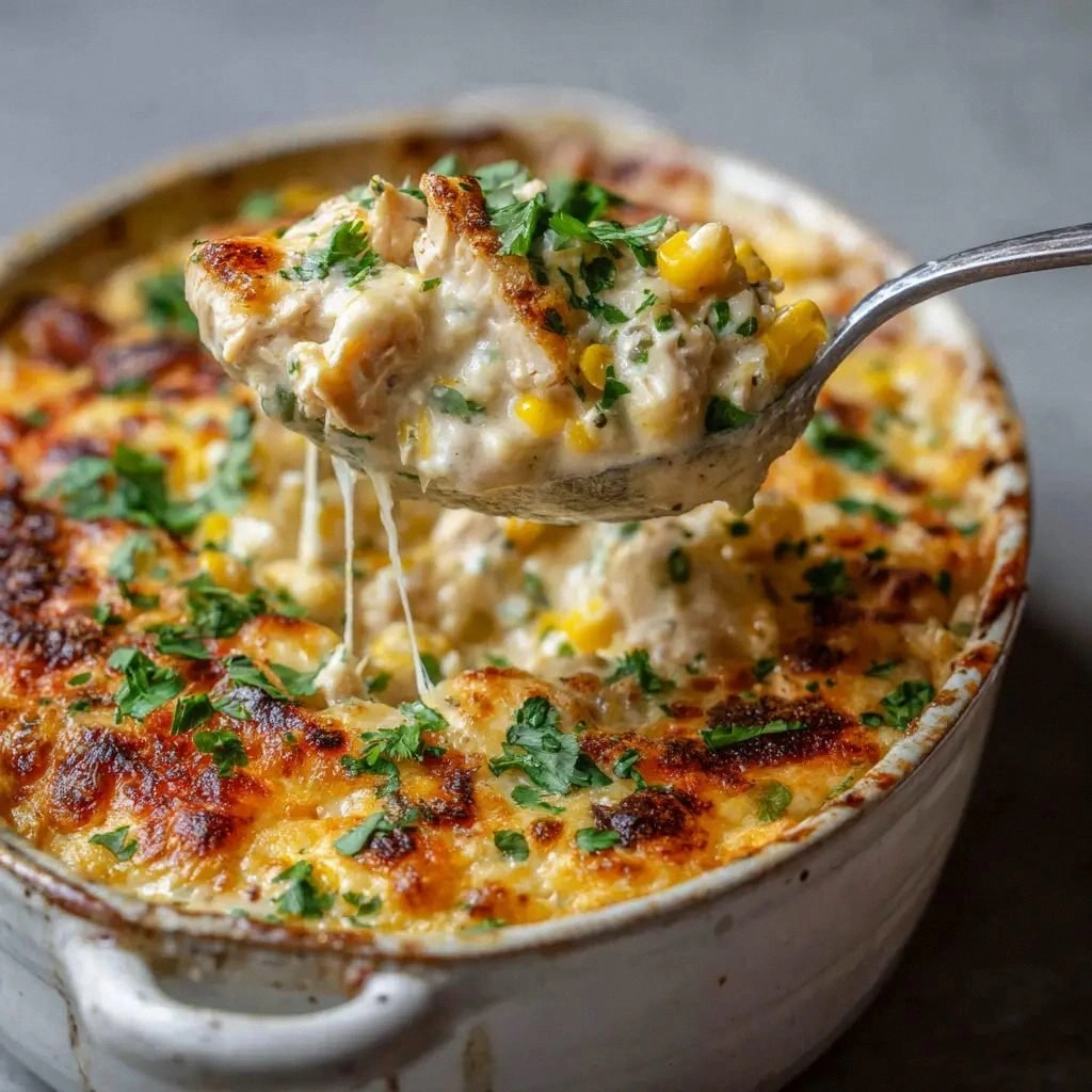 Texture: The creamy sauce coats the chicken and corn like velvet, while the melted cheeses form a golden crust that cracks pleasantly when you bite into it. The jalapeño provides a subtle heat that lingers, and the fresh cilantro offers a crisp, peppery finish. The result is a layered mouthfeel that keeps you coming back for more.